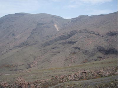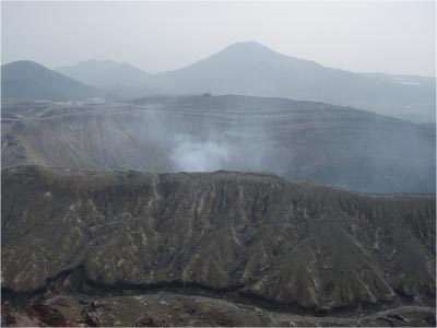 硫黄のニオイと、火山ガスでのどが痛くなり大変でした!火口の写真 →