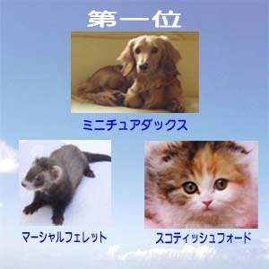 犬や猫以外では、マーシャルフェレットがダントツで人気みたいで、ウサギ、ハムスターが続いています。